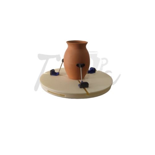 No hace falta que lo ubiques exactamente en el centro. Al girar el plato superior, los accesorios se acercaran al centro del Retorneador, automáticamente centrando y fijando tu pieza de cerámica.